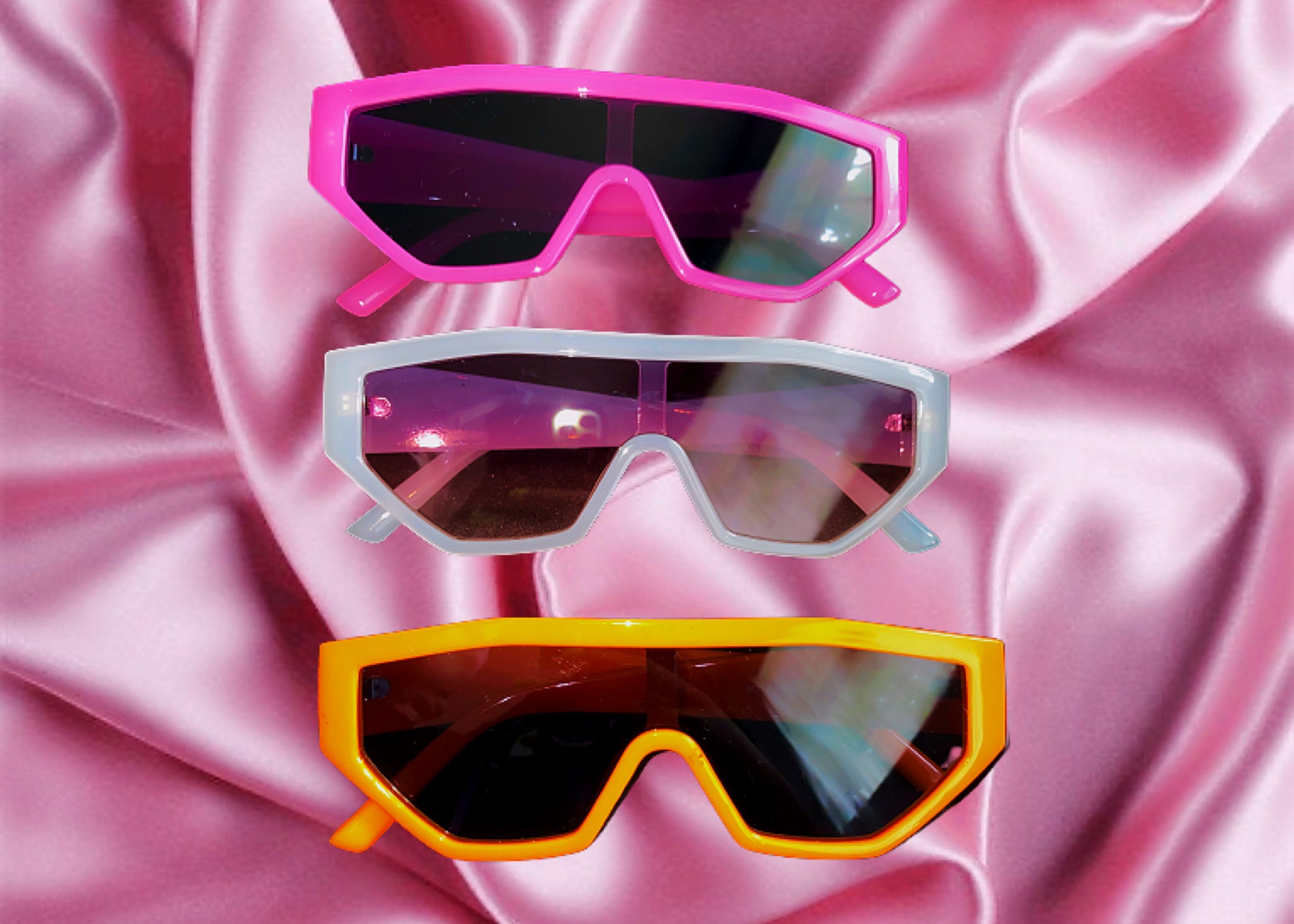 Comes in two toned clear, neon pink and neon orange. Final sale.